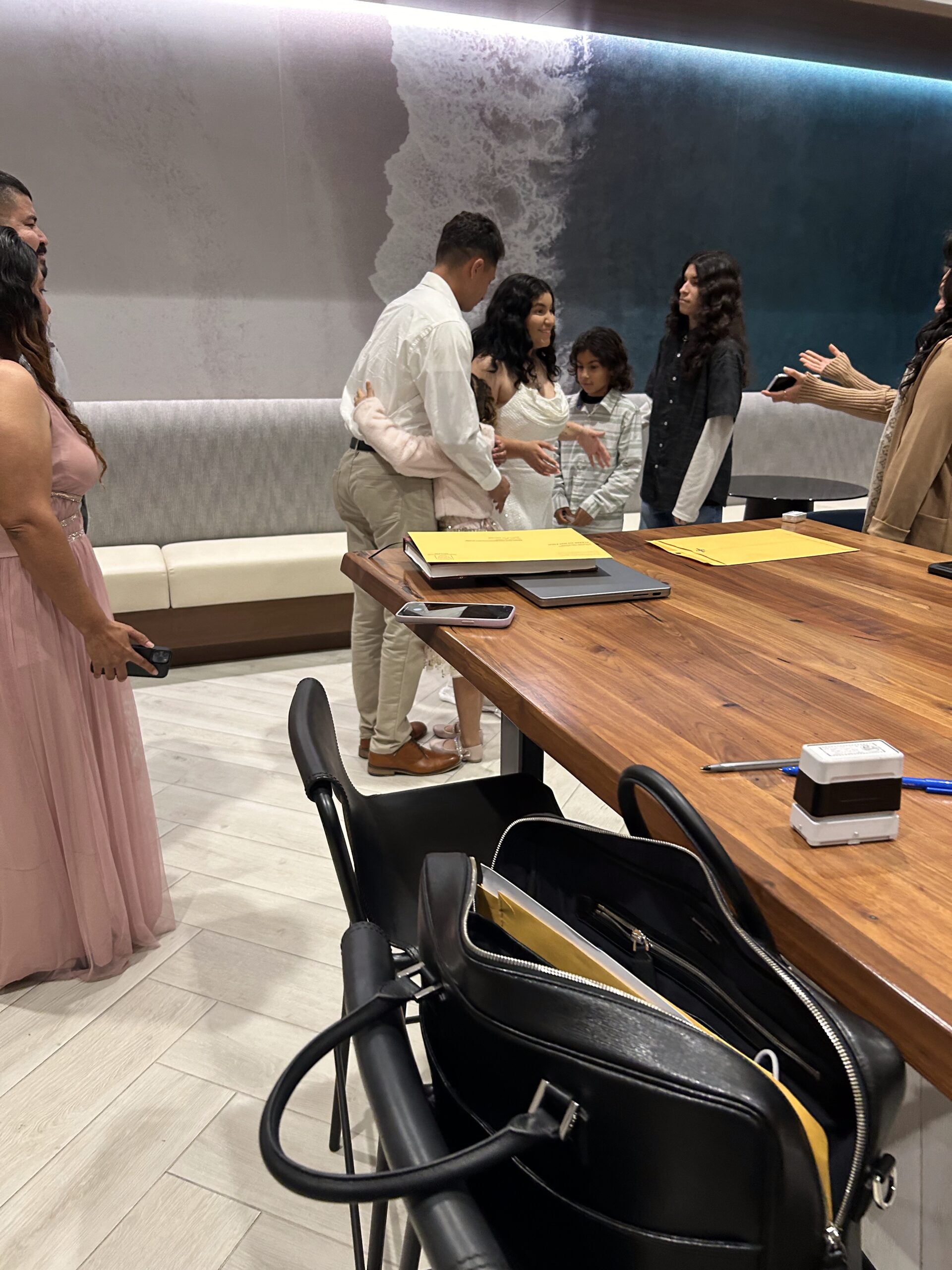 In the conference-room style space, you’ll sit comfortably while your marriage license is prepared. This is where you complete and sign the California marriage license without needing a courthouse visit.